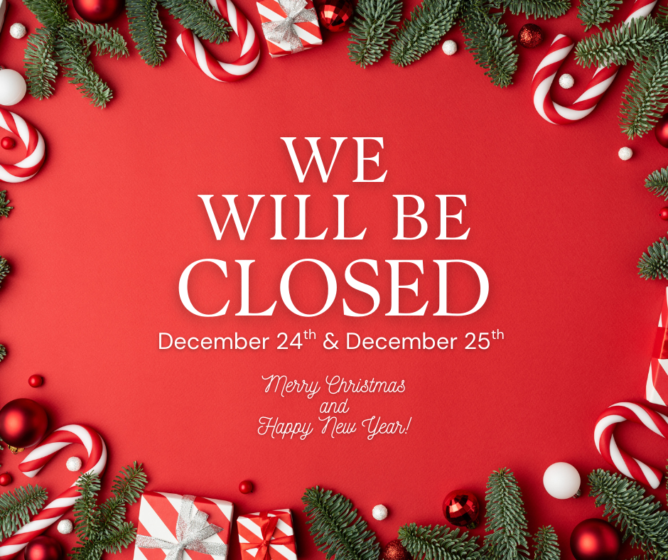 City Hall will be closed for Christmas on Wednesday, December 24th & Thursday, December 25th.