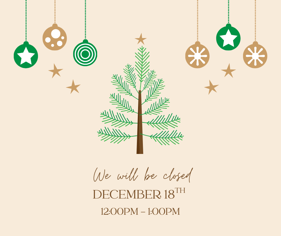 City Hall will be closed from 12PM -  1PM on Thursday, December 18th.